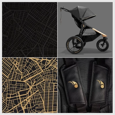 As a parent, you’re resilient, powerful, and made to tackle more, all with the Baby Jogger® Summitâ„¢ x Robin Arzón Jogging Stroller at your side. Designed in partnership with marathon runner and fitness instructor Robin Arzón and inspired by her hustle, this stroller/jogger hybrid outmaneuvers other jogging strollers on any terrain. All-wheel suspension and a unique, hand-operated deceleration brake provide increased control and added safety as you hit the pavement, making you unstoppable. Bold black and dazzling gold accents—from the rims to the stitching to the tone-on-tone seatback print—raise the bar on style. The gold grid print on the canopy interior is inspired by the streets of New York City and designed by a local NYC artist. Vegan leather harness covers, reflective canopy accents, and a gold-stitched safety tether complete the sleek look. This jogging stroller is equipped with a handlebar-mounted swivel lock for your convenience. Simply flip the lever to lock the front wheel when you’re ready to tackle your marathon prep, or release to swivel mode for walking. Customize your running stroller with the following available accessories (sold separately): Baby Jogger®/Graco® car seat adapters, pram, glider board, child tray, and weather shield. The Summitâ„¢ X3 Jogging Stroller is designed to keep up as you hustle like a mother.