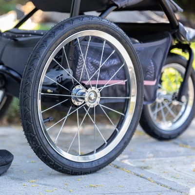 The Baby Trend® Expedition® Jogger is designed with style and security for you and your child. It has a parent tray with 2 cup holders and covered storage compartment and an extra-wide ergonomically shaped rubber grip for comfortable handling. The child’s tray has 2 cup holders to keep beverages and snacks handy for your little one. The jogger also includes a 5-point harness and a rotating canopy with visor that can be adjusted to shield your child from the elements. It has a convenient storage basket under the seat, offering ample space to carry feeding bottles or other baby essentials. The stroller easily folds into a compact unit for easy storage. Its front wheel swivels for easy maneuvering. The wheel can also be locked to offer in-line performance. This travel system includes the all-new EZ-Lift 35 Infant Car Seat with the integrated Side Grip handle for ergonomic carrying.