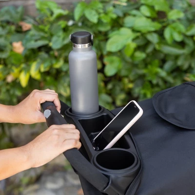- Removable/Swing away child trays with cup holders and snack areas​.