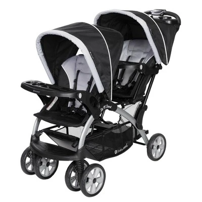 Double the safety, double the style, and double the babies – that’s what you can do with the Baby Trend Sit N’ Stand Double Infant Stroller. This convertible double stroller features 2 seats or a removable rear seat for a standing platform for your older child.Sometimes kids just can’t sit still, so give them the option of sitting, standing, or sleeping in this convertible double stroller. This stroller features a parent tray with cup holders to keep your phone, keys, and drink within reach. It also includes a large storage basket under the seat for holding everything you need for a busy day. Keep your children safe wherever you go with the Baby Trend Sit N’ Stand Double Infant Stroller today.