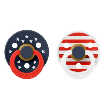 BIBS Colour Stars & Stripes pacifier has the same high quality as the original BIBS Colour but features unique prints. The BIBS natural rubber baby pacifier allows your child to self-soothe by exercising their sucking instinct in the most natural way possible, by mimicking both the shape and soft materials of mother’s breast. This paci is recommended by midwives to support natural breastfeeding. Their classic appearance captures a look that’s both timeless and elegant. 100% free from BPA, PVC and phthalates. Designed and manufactured in Denmark.