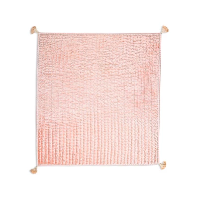 Glam up your nursery with our incredibly soft and sumptuous velvet baby kantha quilt. Hand-quilted using ancient techniques inherent to India. Adorned with tassels and a contrast stitch edge – this is the perfect plush accent to drape over a chair or use as a playmat for tummy time. 100% cotton sateen striped print back. Coordinates with our Crane Baby crib sheets, swaddle wraps, blankets and bed skirt. Thoughtfully and ethically sourced.