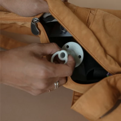 Stop messing around with pacifier cases because the pacifier has been reinvented! You have enough things to worry about as a parent; germs shouldn’t be one of them. Inspired by moms everywhere, we created the Binnie to be an alternative to the traditional plastic or rubber pacifier that offers no protection from germs or debris. Our patent-pending Binnie Pacifier is a retractable pacifier that stays clean & is more hygienic with a retractable nipple. No more placing a pacifier on a dirty table or fumbling around trying to find the case. Just pull the ring and the pacifier retracts into its own storage compartment! The Binnie is made with medical-grade silicone that mimics the shape and feel of the breast, quickly soothing your child with a familiar feel. Your baby can still enjoy the benefits of breastfeeding and avoid nipple confusion with our extra soft tip and lightweight design. Ventilation holes offer breathability for your babys skin and prevent skin rashes or irritations.