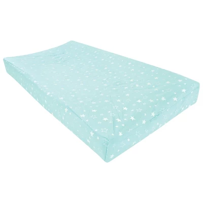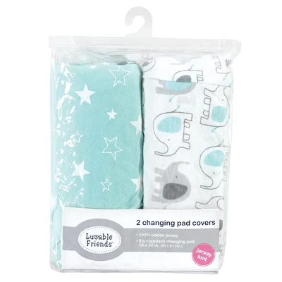 Luvable Friends cotton fitted changing pad cover is the perfect nursey accessory. Our changing pad is super soft, 100% cotton which is soft and gentle on babies skin. Our changing pad covers are durable enough for wash after wash and soft on baby’s skin. Fitted elastic around the edges ensures changing pad cover will stay on. Adorable prints and designs to fit any nursery decor. This cover is standard size to fit most changing pads measuring 16 x 32 inches.
