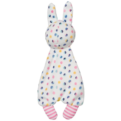 - TACTILE EXPLORATION: With a variety of colored soft plush fabrics and embroidered facial features, this animal-shaped mini baby blankie encourages tactile exploration. An engaged baby, especially one that is teething, makes for a calmer caregiver.