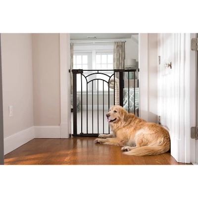 Now that baby is on the move, the Easy Install Décor Tall & Wide Gate makes it simple to create child friendly areas within your home. For use between rooms, a walk through gate makes it easy to get around the house, with no need to reinstall it each time you pass by. All pressure mounted gates need to be occasionally tightened before they become too loose. This safety gate makes knowing when to do this simple. When the SecureTech® indicator turns red, it’s time to re-adjust the pressure. An extra-wide gate lets you easily block off the larger through-ways in your home. This extra-tall gate is also designed to provide additional height protection and is great for homes with both babies and pets. The gate is 36 inches high and can be adjusted from 29 to 47 inches.