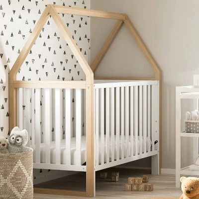 - CANOPY TOP, MODERN DESIGN: Minimalist design with canopy top makes this crib easy to match with any modern, contemporary, gender-neutral, or Scandinavian style nursery; Crafted with pine wood and engineered wood; Assembly required