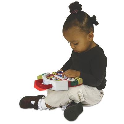 Babies and toddlers will welcome Old MacDonald’s Farm with open arms once they see and hear the delightful sounds and lights coming from the lightweight portable barn shaped toy with friendly faces. Little ones can select either mode – animal sounds like “moo” and “baa” and Old MacDonald’s Farm to sing along with. Large whimsical buttons, a bright red barn background, and a cheerful tree and sun that lights up make this a joyful classic! It has a large rounded handle for easy carrying, too. Measures 9” long x 7.5” high. Ages 12+ months. Requires two AA batteries (included).